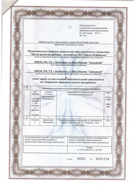 | Адрес местонахождения образовательной организации* | Республика Дагестан, город Буйнакск, Жил. Массив "Западный" |